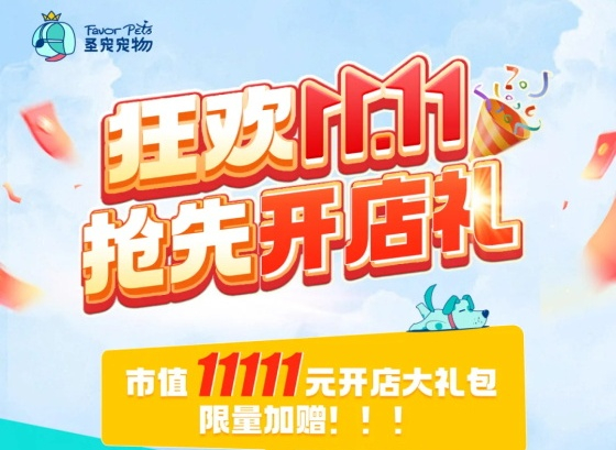 11.11倒计时丨市值11111开店大礼包名额告急,手慢无! 圣宠宠物12周年遇上双11,限时开店豪礼大方送! 更多>>
